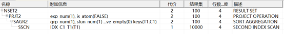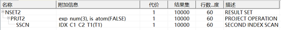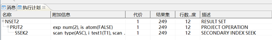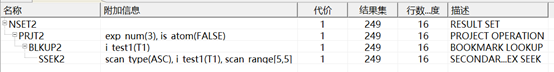 说明:SSEK2是二级索引扫描即先扫描索引,再通过主键、聚集索引、ROWID等信息去扫描表;