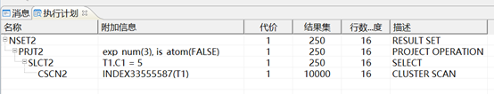 说明:查询条件C1 = 多少,存在C1索引,需要注意的是操作符后面的描述scan_range[5,5],表示精准定位到5,无疑,多数情况下这样是比较有效率的。